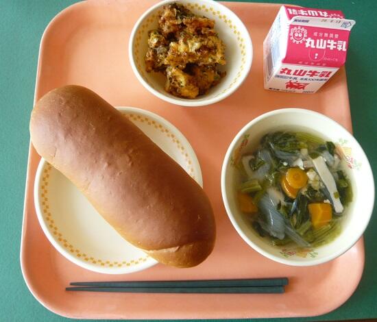 6月8日 たこ焼き風 中華スープ 黒糖パン 牛乳