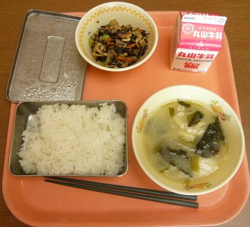 12月8日 ひじきの炒りに 北浦真鯛のみそ汁 ご飯 牛乳