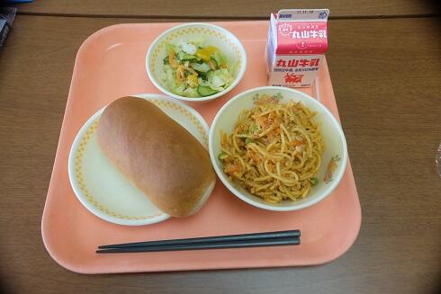 今日の献立は、減量コッペパン、牛乳、ミートソーススパゲッティ