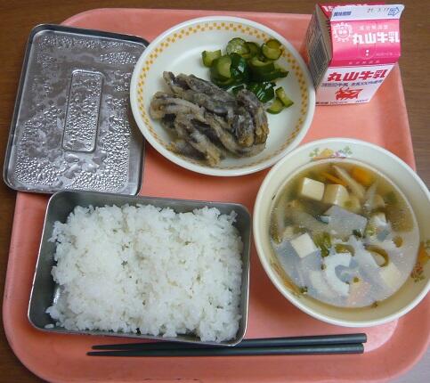 3月10日 めひかりの唐揚げ キュウリのコロコロ漬け つぼん汁 ご飯 牛乳