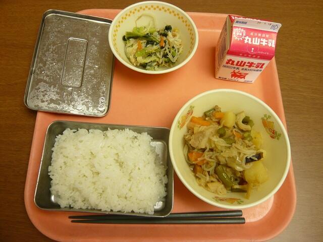9月11日 肉じゃが 辛子和え ご飯 牛乳