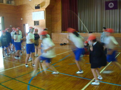 5・6年生は、速いスピードで縄を回している中、跳ぶことにチャレンジしています。けなす、攻める発言はなく、励ます言葉をメインにみんなで跳ぶよという雰囲気がよかったです。