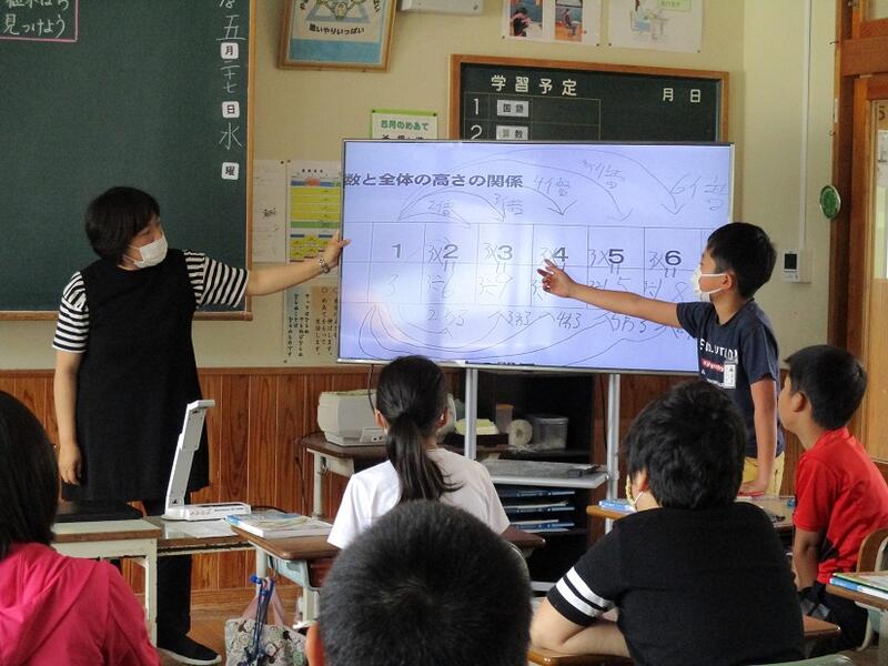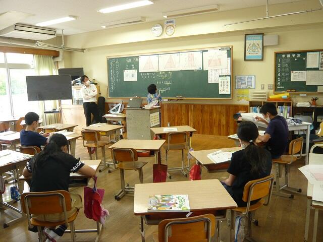 5月27日、5年生の学級で模範授業がありました。この日は、淵上先生の算数の授業でした。子どもたちの思考を深めるたくさんの工夫がありました。先生方一人一人の授業を見せていただくと、実に勉強になります。このような状況ではありますが、本年度も、互いの授業を参観する場をできるだけ設定して、子どもたちと同様、学び合う教職員集団でありたいと思います。