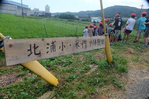 学校近くの田んぼをお借りして、5年生が米作りに取り組んでいます。