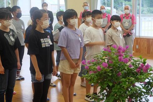 始業式では、3年生の高須佳乃さんと5年生の日髙幸咲くんの作文