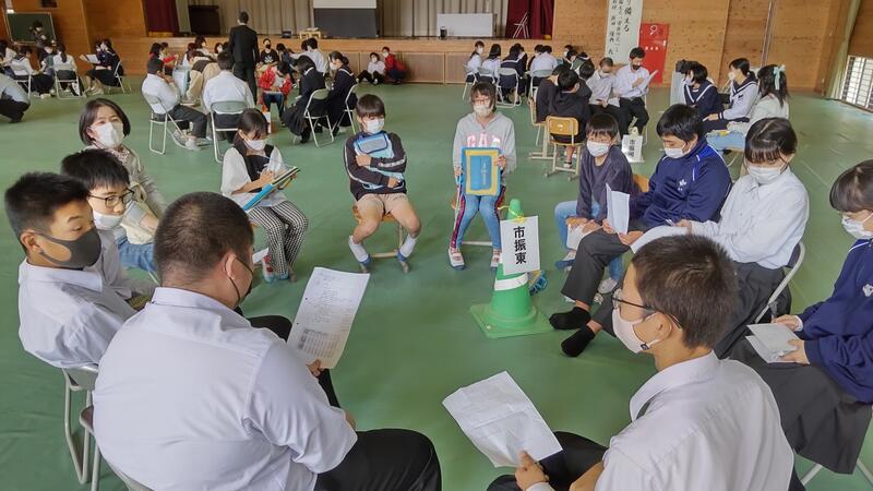 3部では講話を活かし、各地区ごとに分かれて、小中学生が一緒になって防災について意見交換しました。
