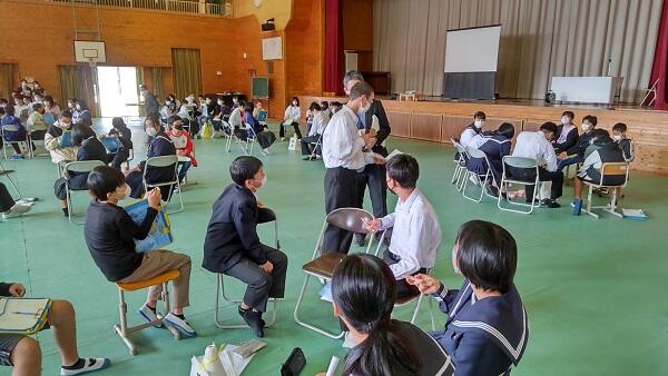 なかなかこのような講話や小中学生一緒での話し合いなどはないのでとてもよい機会になりました。原田教授は2040年前後で南海トラフ地震が起こる可能性が高いとおっしゃっていましたので、防災についての意識を高めていきたいと思いました。