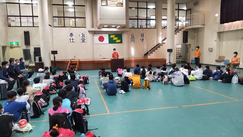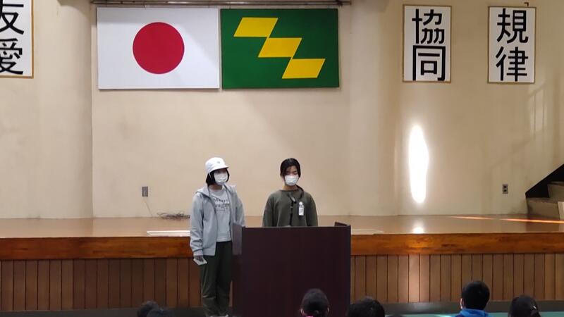 今日は全校集会が行われ、環境美化委員会が無言清掃やベルマークなどのことについての話を行いました。子どもたちは静かに一生懸命環境美化委員会の説明を聞いていました。しっかりと無言清掃に取り組み、きれいな学校になるようがんばって掃除をしてほしいと思います。