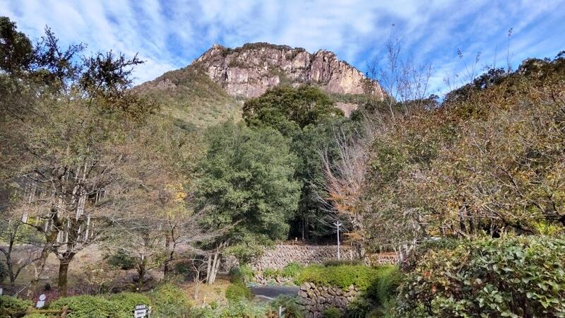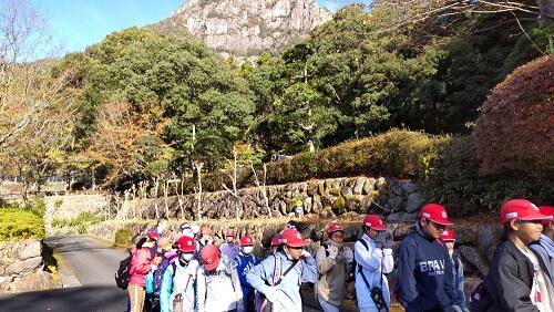開所式後にすぐに子どもたちは行縢山を目指しました。自然の家から自分たちの登る行縢山の雄岳を眺めると「えー」「すげー」とかいろいろな反応が返ってきましたが、みんながんばって無事登頂にも成功し、全員けがもなく下山することができました。