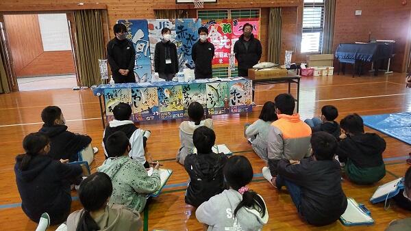 今日は県の学校給食会が主催で「ひむか地産地消交流給食会」が行われました。体育館には野菜や椎茸、魚のブースが設置され、まずは3校時に5・6年生がブースごとに担当者の方からお話を聞きました。事前に質問内容を担当の方へ送り、その質問に答えるような流れでいろいろなことを教えていただきました。子どもたちはとても真剣な顔で聞いていて、とてもよい経験ができたなと感じました。そのほかの学年も4校時目に展示物の説明を聞いたり、鰹の一本つりの体験をしたりして地産地消についての学習を深めました。