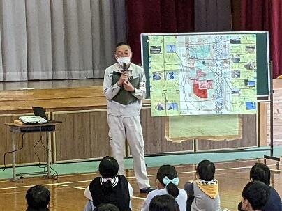 今日は東日本大震災のことを忘れてはいけないと言うことで実施されている【忘れてはいけない日】という防災授業が行われました。始めに東日本大震災の津波に映像等を児童に見せ、自分の命を自分で守るために大切なことを考えようというめあてのもと授業を行いました。次に4年生が自分たちで調べた地域の安全マップについて発表し、危険なところや注意すべきポイントを紹介しました。次に延岡市消防本部の濱方防災士から避難の際の心構えや大切なことについてお話をしていただきました。最後に子どもたちからたくさんの質問があり、濱方さんからわかりやすくお答えをいただきました。これから南海トラフ地震が起こる可能性が高まっている中、いざというときに自分の命は自分で守られるような力を身に付けていければと思っています。家庭でも避難場所の確認等はしっかりと行ってほしいと思います。