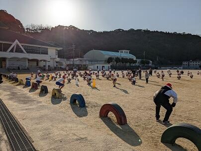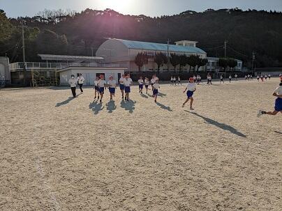 体力向上のために月曜日の朝の時間に5分間走を行っています。子どもたちが中心に準備運動なども行い、自分の体力に合わせながら、一生懸命走っています。少し寒いですが体操服になって子どもたちが一生懸命走る姿はとても気持ちがいいですね。