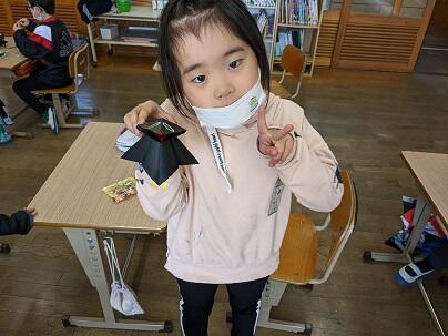1年生は生活科で昔遊びの学習を行いました。地域に住む河野奈美子さんの支援をいただきながらおじゃみやビー玉遊びなどをしたり、最後に折り紙を使って動くカラスを作ったりしました。1年生はとても楽しい時間を過ごしたようでした。