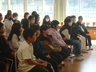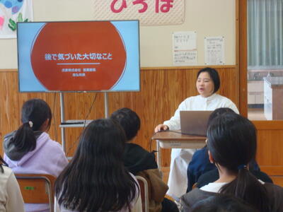 5・6年生を対象に子どもたちへ伝えたいこととして、(株)風の菓子「虎彦」の吉弘様より、講話をいただきました。これは市の事業の一つでもあります。