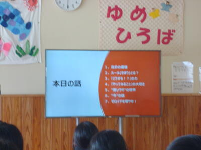子どもたちも真剣に話を聞き、感想発表の場面では多くの子が、自分の言葉に変換して自分の思いを伝えることができました。
