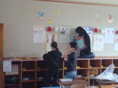 明日(4月12日)、14名の新入生が入学してくれます。そのため、4月11日の5・6時間目を使って準備を行いました。5・6年生の子どもたちも教室の飾り付けや体育館の花運び・花並べ等を頑張ってくれました。そのおかげで、きれいな会場になりました。