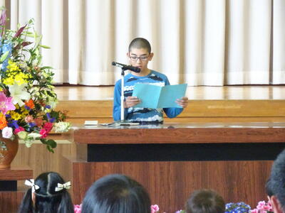 ↑ 6年生代表による挨拶、ゆっくり丁寧に伝えていましたね。とてもよかったですよ