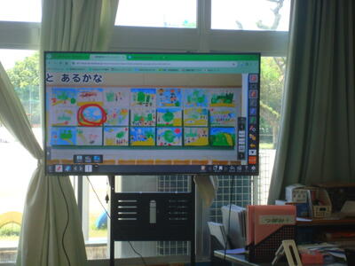 タブレット端末と大型テレビを使って、子どもに考える場面を与えた学習も行っております。