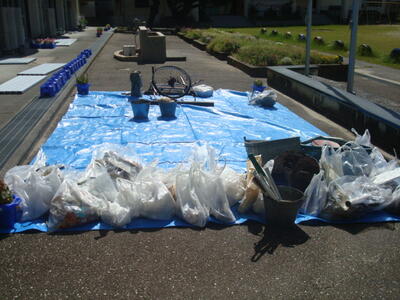 ↑ 今回、回収したゴミです。このあと、重さを量ったり、4年生がゴミに関する学習で活用します。