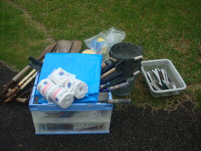 ↑ 遠足前日に、遠足で使いそうな道具を職員が準備して、子どもたちが満足できるように配慮してくれています。また、5・6年生は前日の雨を気にして山道は滑らないか、もう一度下見(3回の下見)に行ってくれました。どの先生も子どもたちのためにできることを先手先手で準備してくれる一生懸命な先生たちです。