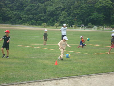 ↑ 自由時間には、ボール遊びをしたり縄跳びをしたりと、たくさん友達とふれあっていました。