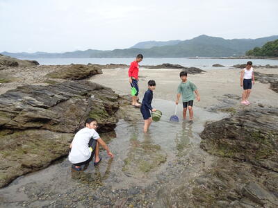 1・2年生は古江のオアシス公園へ徒歩で、3・4年生は須見江の海水浴場とビーチの森へスクールバスで、5・6年生は大間海岸へ徒歩で行きました。それぞれの場所の良さを生かした活動を実施してくれました。