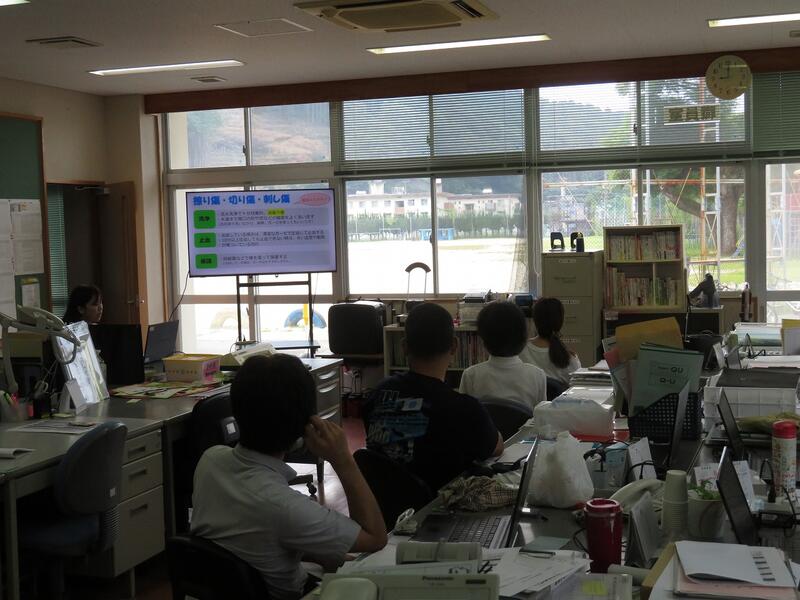 子ども達は夏休みに入りましたが、私たち職員はまだ研修等があり学校で仕事をしております。昨日の様子を紹介します。