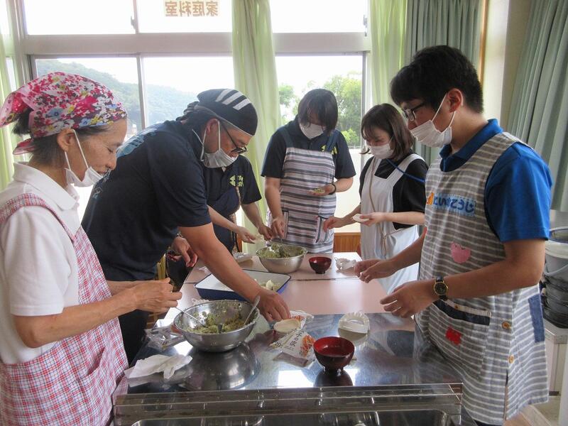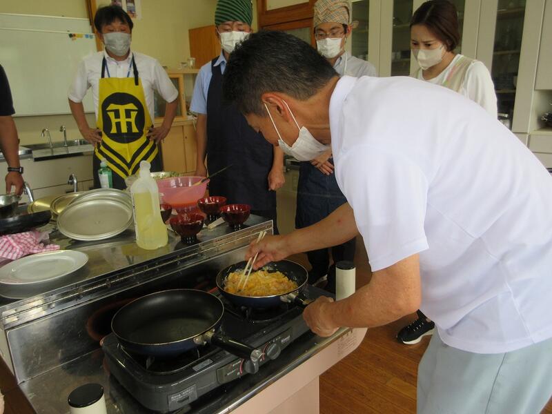 ↑休憩時間には、元調理師の本校技術員さんに教えてもらいながら、職員みんなで餃子とかに玉を作りました。勉強になりました。