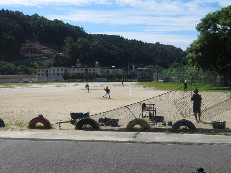 延岡市の夏休みは今日を含めてあと12日です。今日も暑いのですが、運動場では「北浦少年野球クラブ」の子ども達が適宜休憩を入れながら、一生懸命練習をしています。ごくろうさまです。