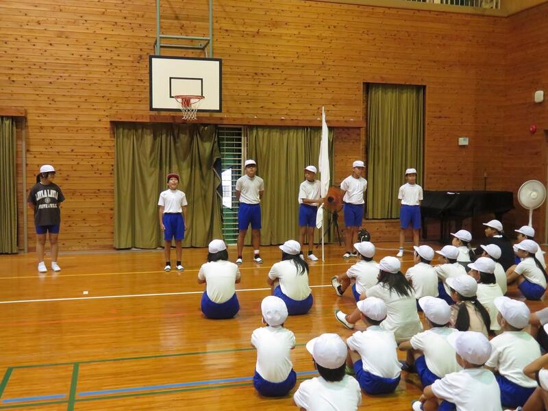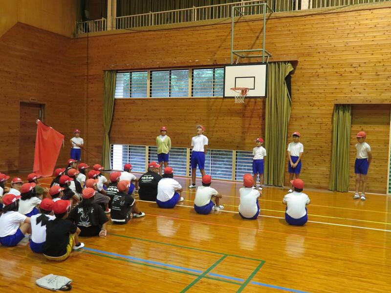 ↑最後に赤・白に分かれてリーダーの紹介、担当職員の紹介がありました。運動会に向けてチームワークでがんばりましょう!