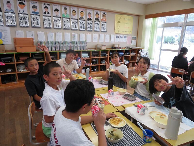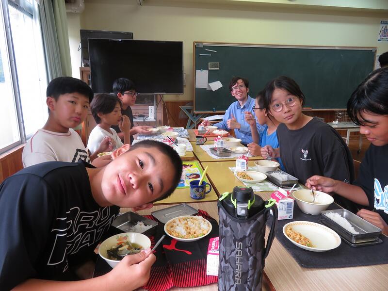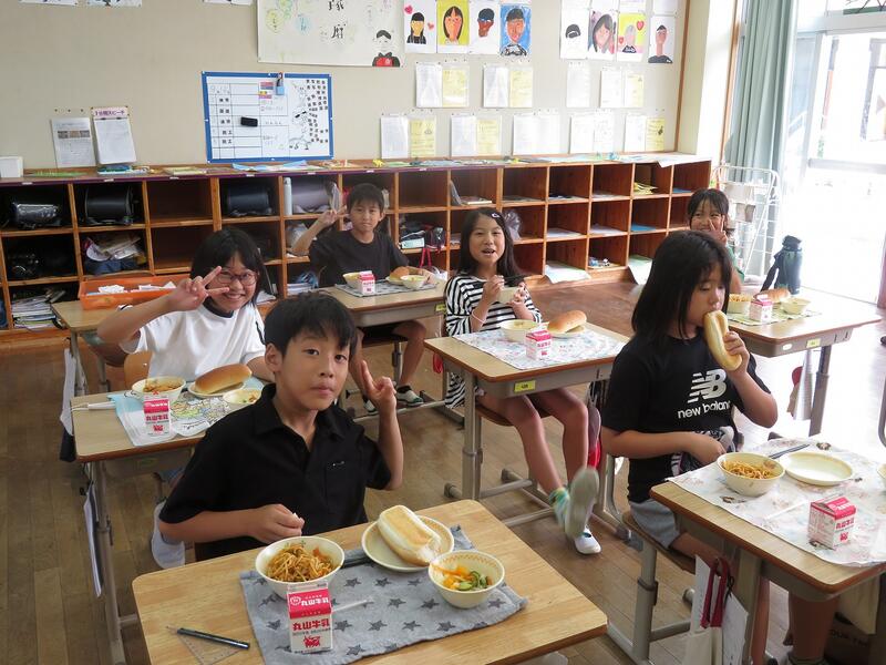 今日の給食は三色ごはん、すまし汁です。6年生の教室をのぞいてみると楽しそうにおいしく食べていました。今日はALTも「サンショクゴハン、オイシイデス」と言って、6年生と一緒に楽しく食べていました。