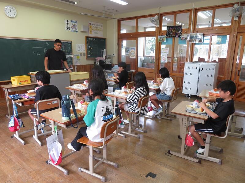 いつも一番4年生!給食の準備・配膳・片付けはいつも一番早いです。今日も一番早く「いただきます」の声が聞こえました。