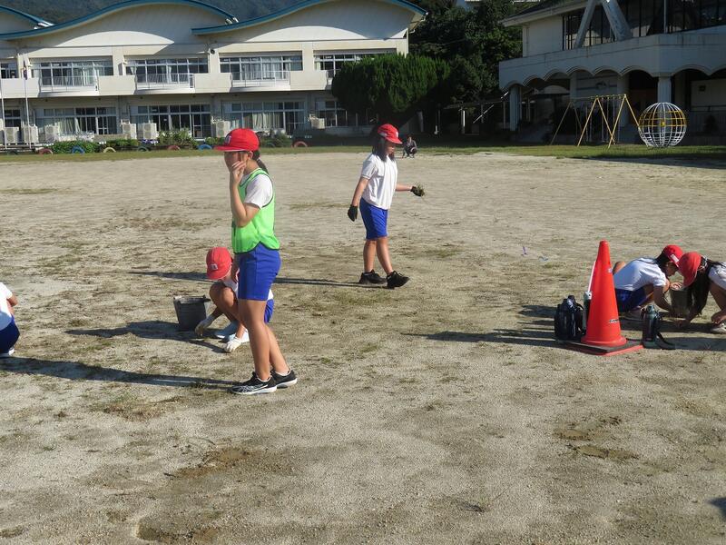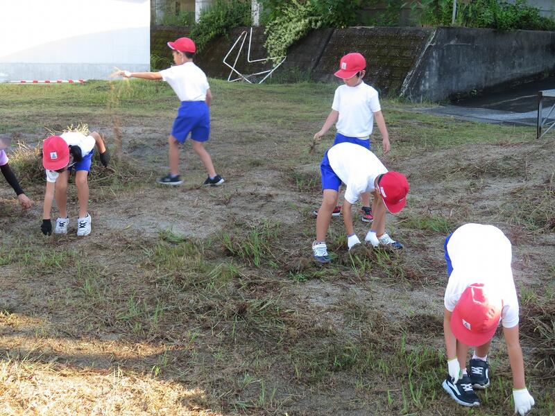 10月25日(土)の運動会に向けて、今日と明日の朝の時間は、全校児童で運動場の草抜き作業になります。