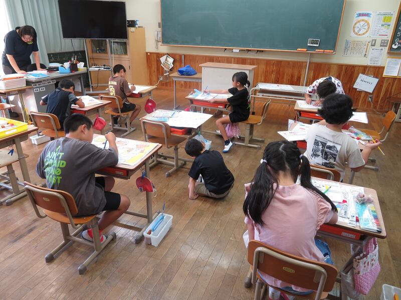 ↑1年生・3年生は読書感想画を描いていました。話し声が聞こえてきません。全集中で描いていました。