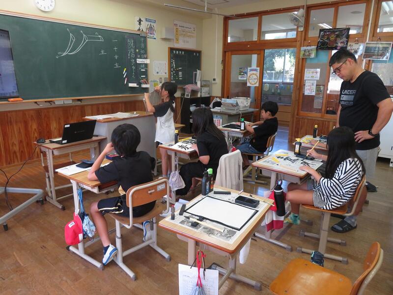 ↑4年生は書写(毛筆)でした。静かに丁寧に取り組んでいました。