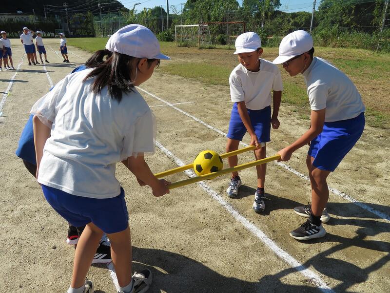 ↑5・6年生は体育で団技やリレーの練習をしていました。元気いっぱい取り組み、友達の走りを応援する姿もよかったです