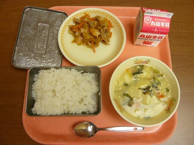連休明けに「キムタクご飯」は、最高です!北浦中学校のリクエスト献立です。今日もキムタクはとってもおいしかったです。ニラ玉のスープもおいしくいただきました!今週もがんばろう!と、思う元気の出る給食でした!