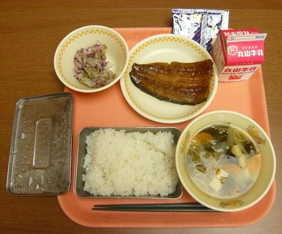 9月25日 宮崎ウナギの蒲焼き キャベツのゆかり和え すまし汁 ご飯 牛乳