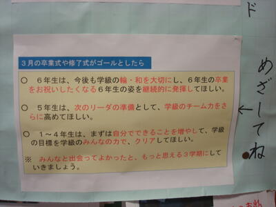 さて、始業式では1年生と6年生の子どもに3学期に目標に関する作文を発表してもらいました。二人とも聞き取りやすい話のスピードで、目標を立てた理由もしっかり伝え、礼の動作も上手にできていました。1年生の発表では、テスト100点を取ること、ちょボラ(ちょっとボランティア)をすること、音楽を頑張ることの3つの目標を発表してくれました。6年生の発表では、2学期を振り返った後、集中力をアップすること、挨拶を笑顔ですること、ちょボラを頑張ることです。ぜひ3月の時点でクリアできましたと言えるように頑張ってほしいです。