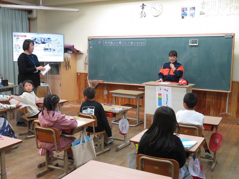 3年生は社会科で「火事から人々を守る」という内容の学習をしています。今日は消防団の仕事を知るため、北浦町内で消防団員をされている保護者の方に来ていただき、たくさんのことを教えていただきました。