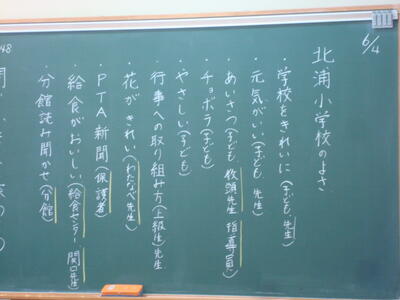 6年生の国語の授業では、インタビュー活動をするようで、「北浦小学校のよさ」という視点から、子どもたちの考えをもとに、その後のインタビュ-活動を行うようです。