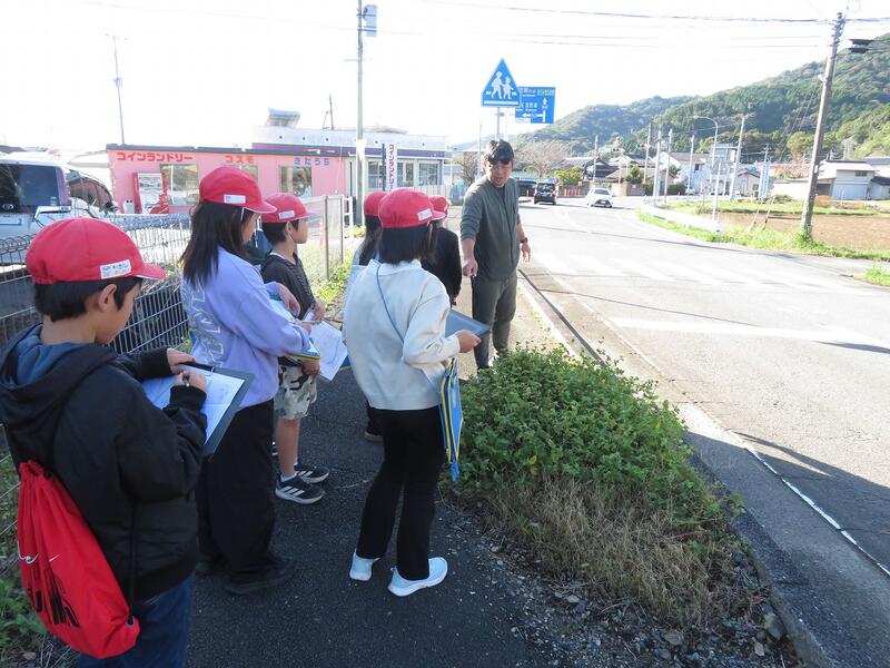今日は4年生が社会科の学習で防災マップを作るための、危険箇所調べということで、学校近くを歩いて調べました。