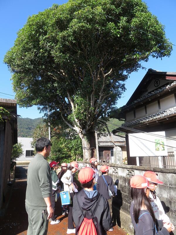 ↑4年生も「古江のキンモクセイ」を見学しました。