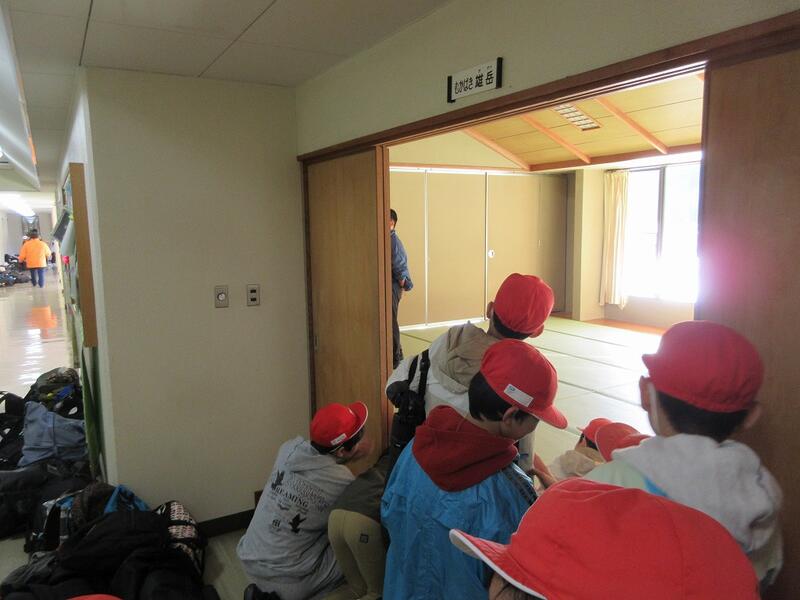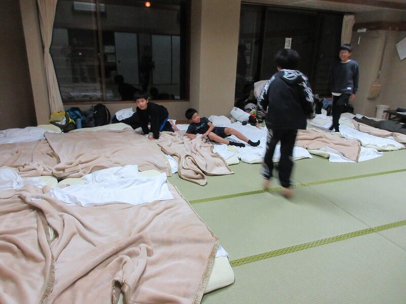 ↑ 夜の活動まで少し時間があり、部屋でゆっくりしているところです。男子11名で1つの部屋でしたが、みんな仲良く寝る場所を決めていて、微笑ましい光景でした。