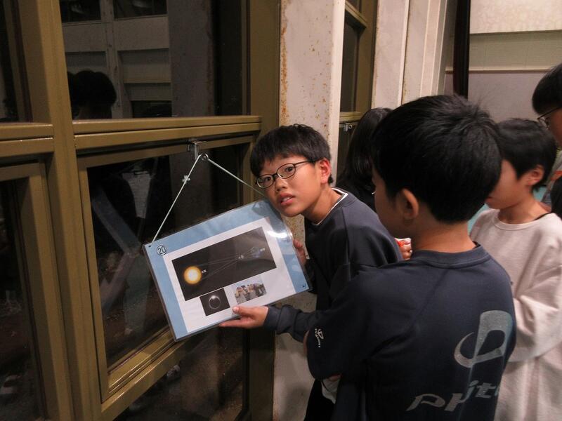↑ 「館内スターウォッチング」は、館内のいろいろな場所に置いてある、星に関する問題をグループで解いていく活動です。