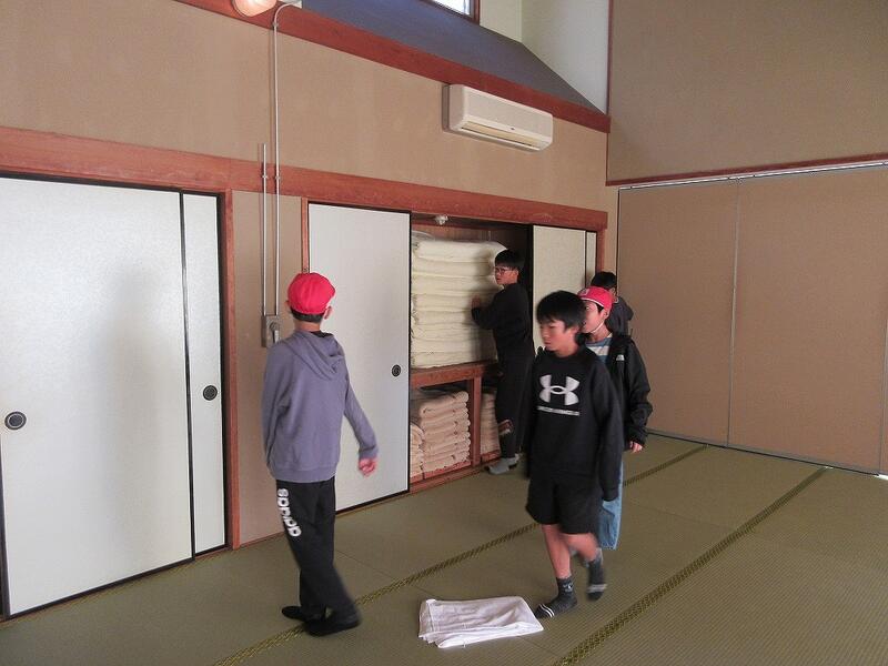 ↑ 2日目の活動を始める前に、部屋の片づけをしなくてはいけません。実はこれが一番の難関で、毛布はきれいに揃えていないと何度もやり直しになるのです。所員の方から1回で合格をもらえるのでしょうか・・・。