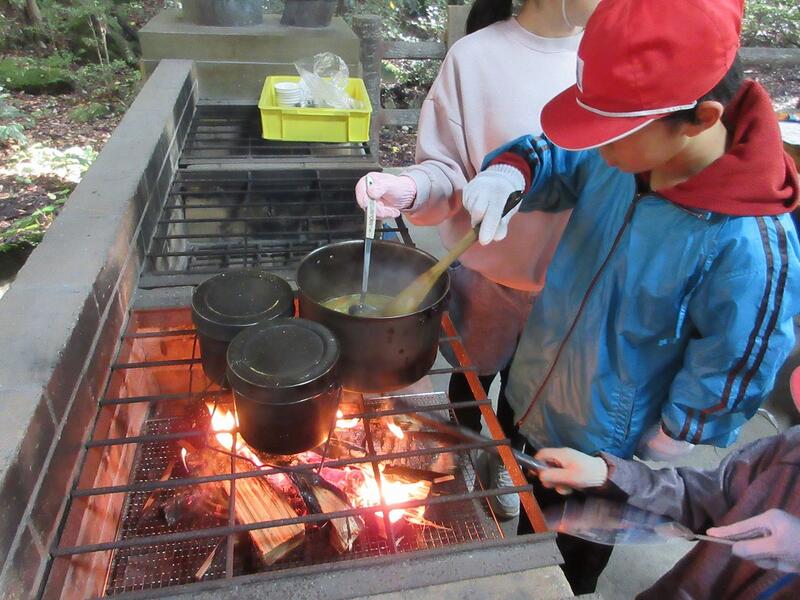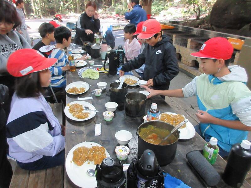 ↑ 炒めるときに油を入れ忘れてしまったり、うちわであおぎすぎて何度か火が消えてしまったりなど、いろんなことがありましたが、どの班も無事にカレーが出来上がりました。