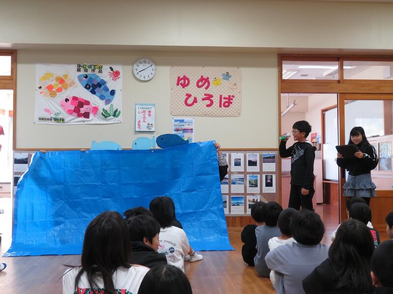 今朝は全校集会でした。環境美化委員会の5・6年生児童が、「ごみを捨てずにきれいな北浦の町にしよう」と、劇をすることでメッセージを伝えてくれました。
