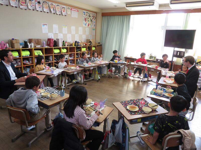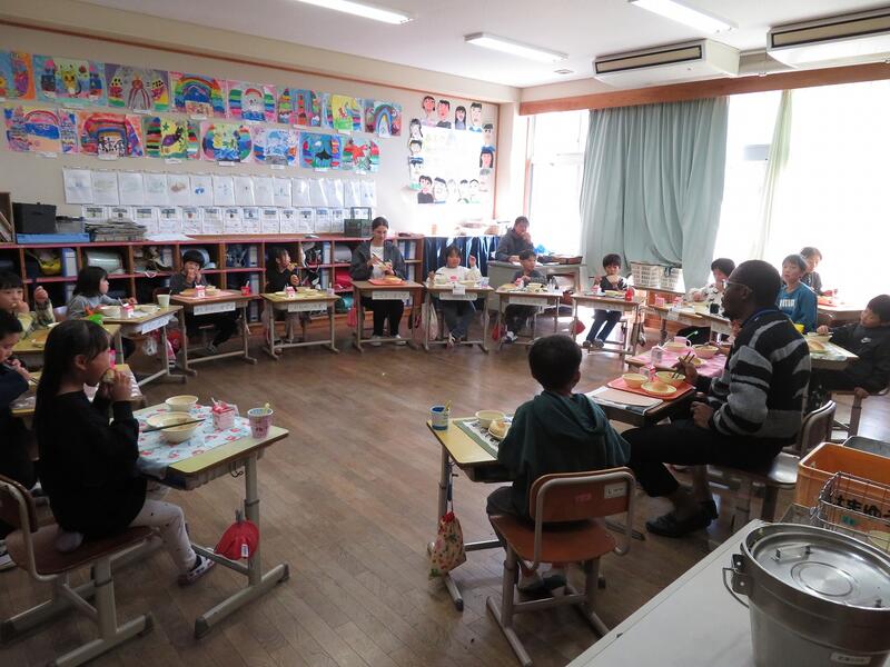 ↑給食時はどの学級にもALTの先生が入ってくださり、楽しい給食になっていました。