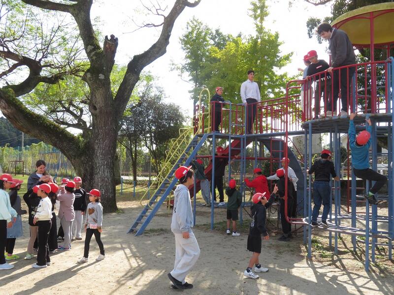 ↑昼休みは運動場や体育館、校舎内でたくさん子ども達と遊んでくれました。